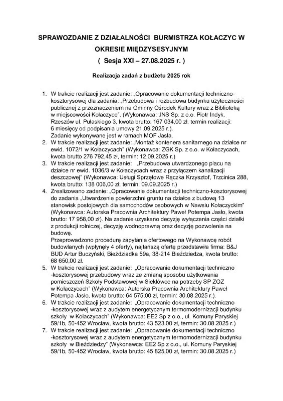 UM XXI SESJA RADY MIEJSKIEJ W KOŁACZYCACH