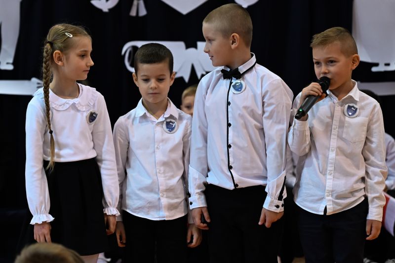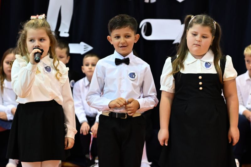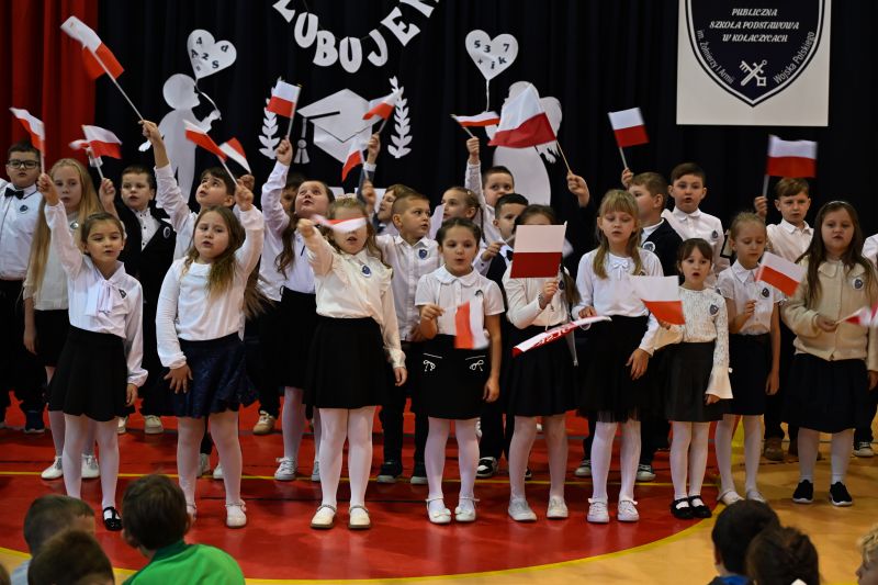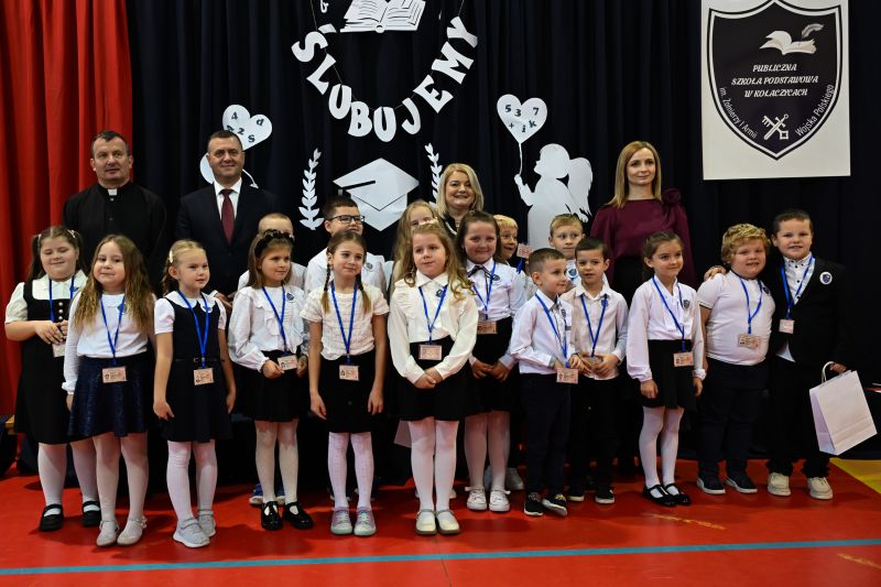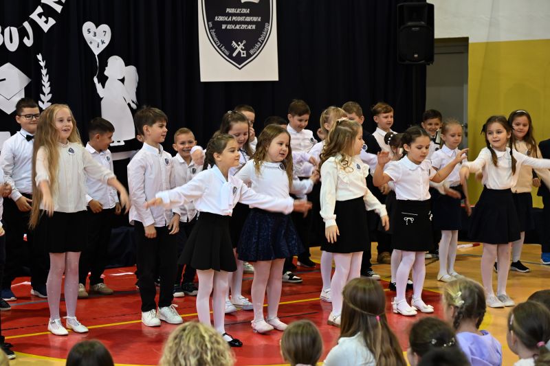 W dniu 28 października 2025 r. odbyła  się w naszej szkole uroczystość pasowanie na ucznia. W tym dniu  dzieci zostały oficjalnie przyjęte do grona uczniów Publicznej Szkoły Podstawowej im. Żołnierzy I Armii Wojska Polskiego w Kołaczycach. Uroczystości rozpoczęły się od wprowadzenia sztandaru szkoły i odśpiewania hymnu polskiego. Pan dyrektor mgr Adam Iwanicki w krótkim przemówieniu przywitał wszystkich zgromadzonych oraz podziękował rodzicom za wybranie naszej szkoły dla swoich dzieci. Następnie rozpoczęła się część artystyczna. Pierwszoklasiści z wielkim zaangażowaniem występowali przed społecznością szkolną oraz rodzicami. Uczniowie zaprezentowali wiedzę i umiejętności, które zdobyli w pierwszym miesiącu nauki w szkole, a swoim występem udowodnili, że potrafią pięknie tańczyć, śpiewać i recytować wiersze.