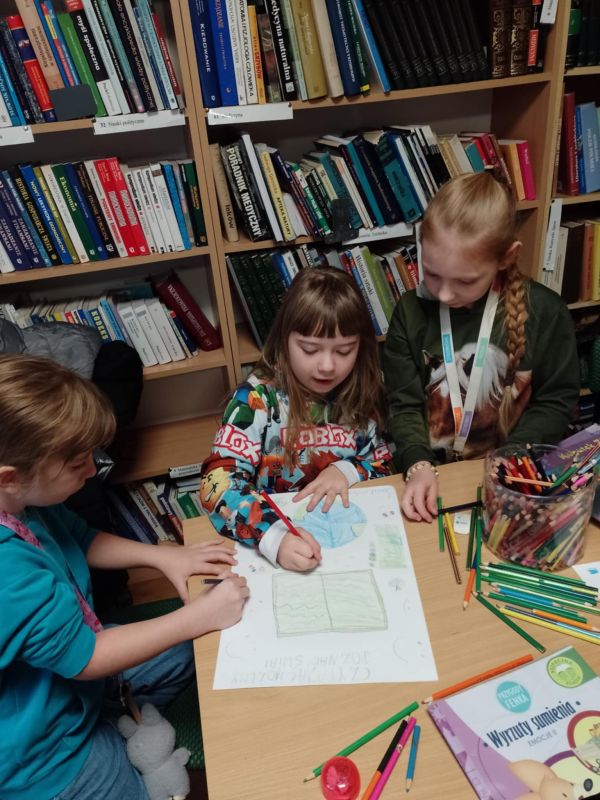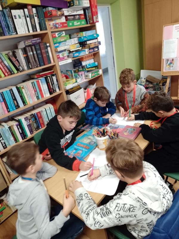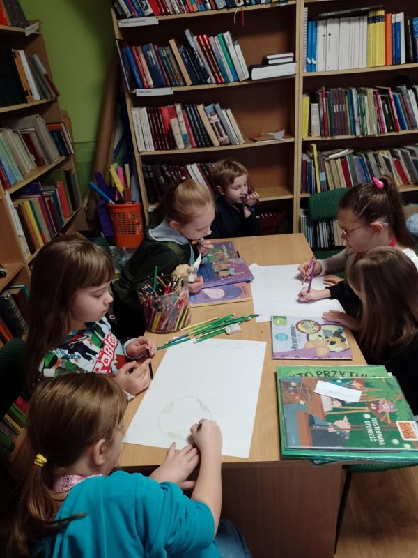 17 listopada 2025r. uczniowie klasy IIa odwiedzili Gminną Bibliotekę Publiczną w Kołaczycach. Dzieci zostały zaproszone na zajęcia, które odbywały się z okazji „Dnia Kredki”. Podczas spotkania uczniowie zostali zapoznani przez panią bibliotekarkę z historią powstania kredek, wysłuchali również wiersza o kredkach. Następnie przystąpili do rysowania plakatów promujących czytelnictwo wśród swoich rówieśników. Dziękujemy paniom Bibliotekarkom za mile spotkanie i ciekawe zajęcia.