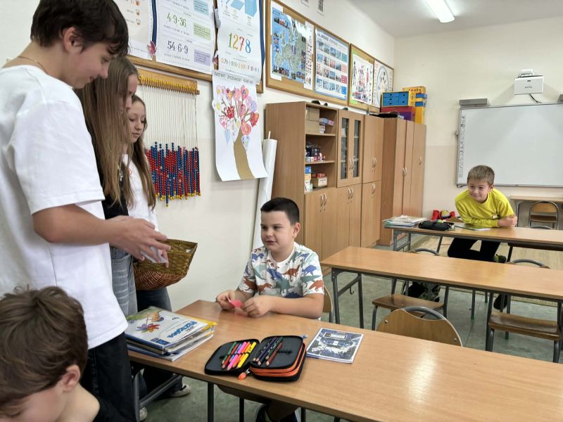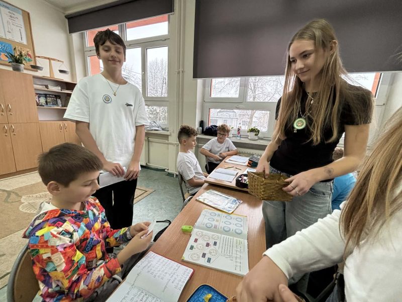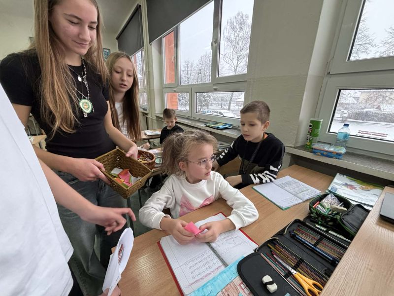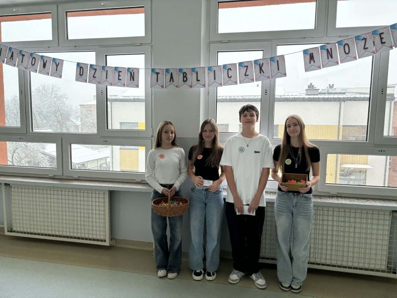 W piątek, 21 listopada, uczniowie klasy 7a: Gabriela Czech, Klaudia Gozdecka i Jonathan Stec, przeprowadzili szkolną akcję z okazji Światowego Dnia Tabliczki Mnożenia. Odwiedzili klasy trzecie oraz pracowników szkoły, sprawdzając ich znajomość podstawowych działań. Za poprawne odpowiedzi uczestnicy otrzymywali certyfikaty, a krótkie rozmowy i matematyczne zadania wywoływały sporo uśmiechu.
