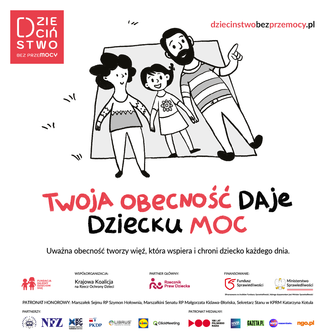 Motywem przewodnim kampanii „Dzieciństwo bez przemocy” w 2025 r. są trzy wartości budujące bezpieczne dzieciństwo: obecność, docenianie i wsparcie. To one przypominają, jak wielką rolę odgrywa uważność dorosłych w rozwoju, emocjach i dobrostanie najmłodszych.
