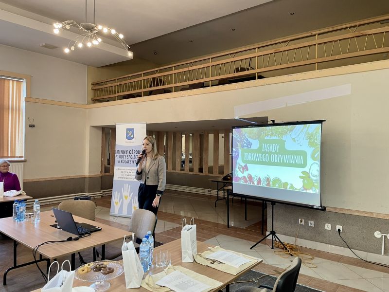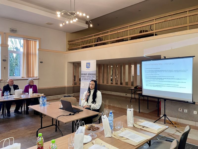 W dniu 19.11.2025 r. odbyło się spotkanie edukacyjne dla seniorów z Gminy Kołaczyce pod hasłem „Jedz na zdrowie. Interakcja leków z żywnością”, które zostało zorganizowane przez Burmistrza Kołaczyc - Panią Magdalenę Stasiowską oraz Gminny Ośrodek Pomocy Społecznej w Kołaczycach. Spotkanie zostało przygotowane z myślą o osobach, które chcą świadomie dbać o swoje zdrowie, łącząc wiedzę z praktycznymi umiejętnościami. Miało ono na celu: