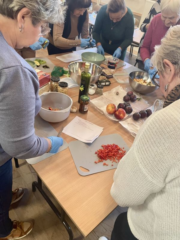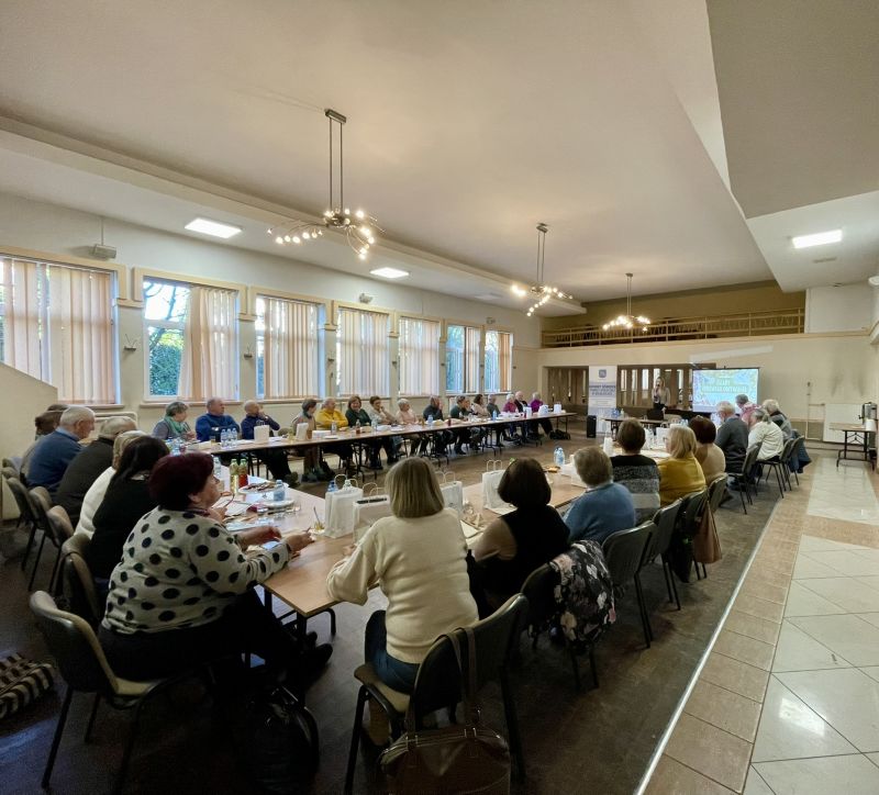 Wydarzenie składało się z kilku części, które uzupełniały się, tworząc wartościowy i przystępny pakiet wiedzy. Spotkanie rozpoczęła prelekcja farmaceutki, która omówiła najczęściej spotykane interakcje lek–żywność, wyjaśniła, jak ważna jest regularność przyjmowania leków oraz na co zwracać uwagę, czytając ulotki i etykiety. Podkreśliła również, jak istotne jest konsultowanie suplementów diety ze specjalistą. Drugą część spotkania poprowadziła dietetyczka, która przedstawiła zasady zdrowego komponowania posiłków dla osób starszych, zwracając uwagę na najczęściej popełniane błędy żywieniowe. Wyjaśniła również, jak w codziennej diecie dostarczyć organizmowi niezbędnych witamin i minerałów. Następnie odbyły się warsztaty, podczas których uczestnicy mieli okazję praktycznie przeanalizować przykładowe jadłospisy oraz dowiedzieć się, jak łączyć produkty, aby wspierać organizm. Na koniec spotkania odbyła się degustacja posiłków przygotowanych przez seniorów.