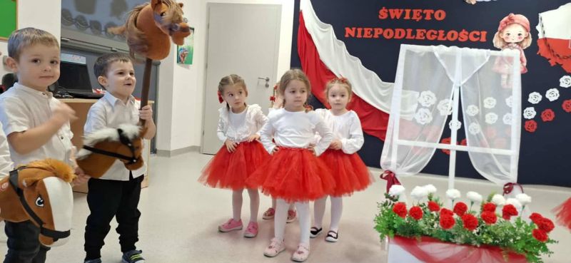 Z tej okazji dzieci ze wszystkich grup przygotowały piękne występy artystyczne. W tańcach i piosenkach przedstawiły ważne dla każdego Polaka treści.