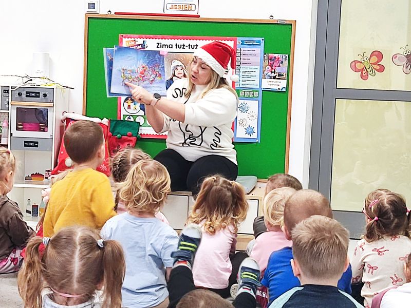 Dzięki książeczce najmłodsze przedszkolaki dowiedziały się: jak wygląd Święty Mikołaj, kto mu pomaga przez cały rok w przygotowaniu prezentów oraz czym przemieszcza się roznosząc prezenty po całym świecie.
