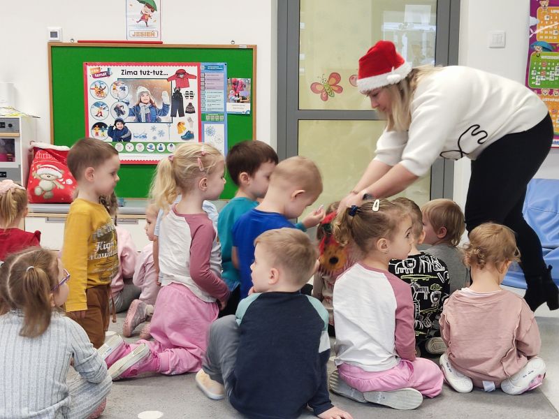 Motylki i Biedroneczki rozśpiewały się i roztańczyły do piosenek „A Mikołaj Pędzi” oraz „Święty Mikołaju”. Na koniec nie zabrakło również słodkiego poczęstunku.