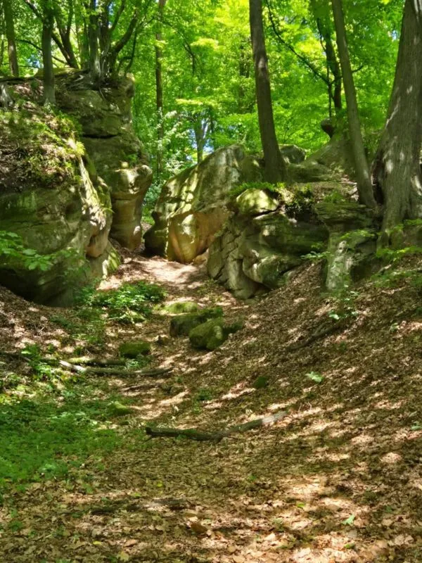 - Wychodnie skał piaskowca ciężkowickiego wraz z otaczającym lasem grądowym.
