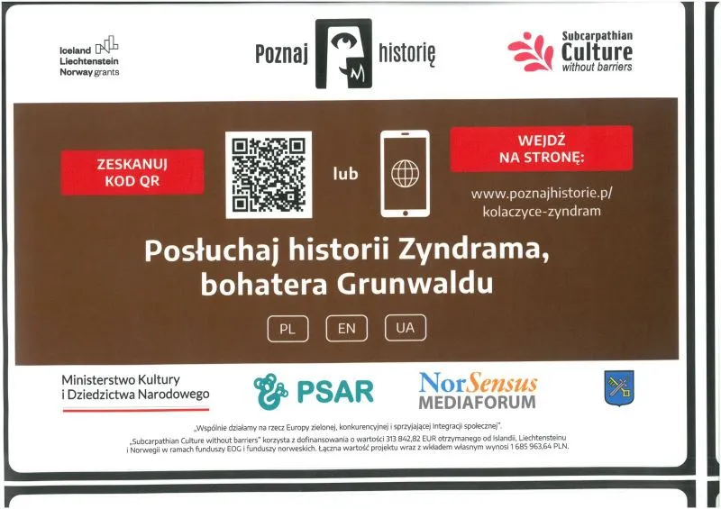 Nie przegapcie tej wyjątkowej podróży w przeszłość! Wystarczy zeskanować kod QR lub wejść na stronę: www.poznajhistorie.pl/kolaczyce-zyndram