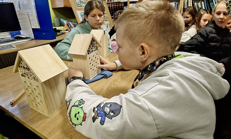 Na koniec każdy piątoklasista otrzymał prezent w postaci domku dla owadów. To było bardzo owocne i pracowite spotkanie. Dziękujemy i zapraszamy ponownie.