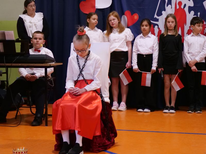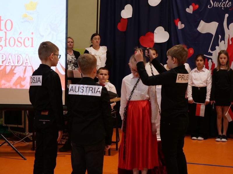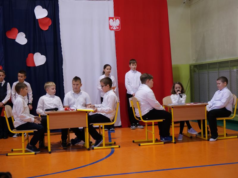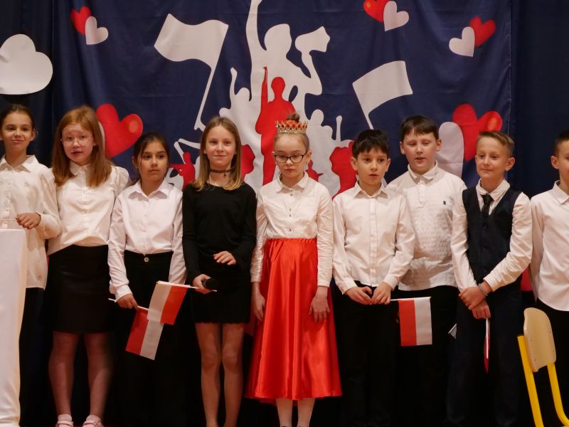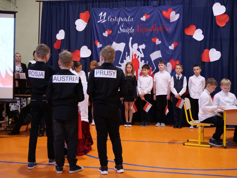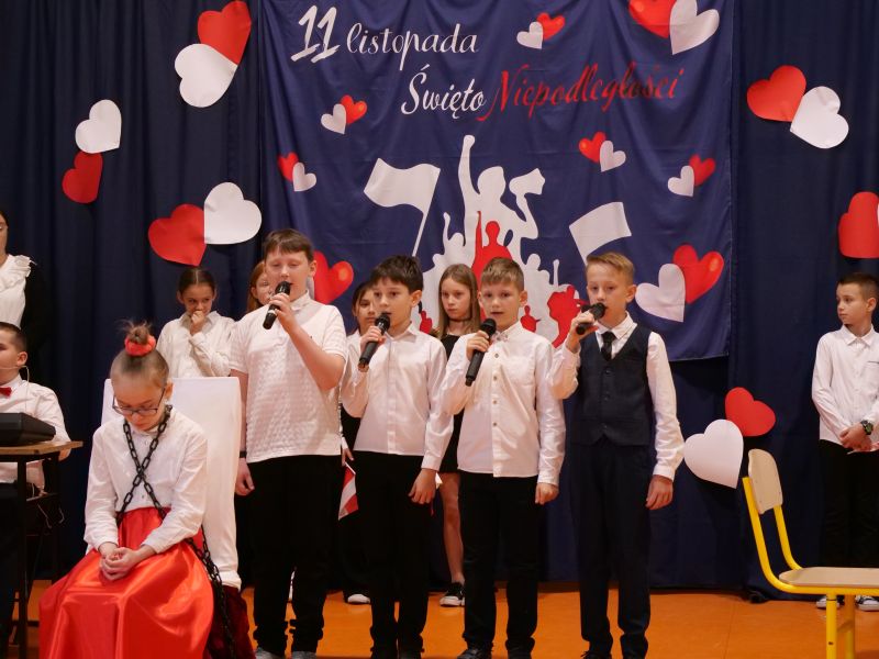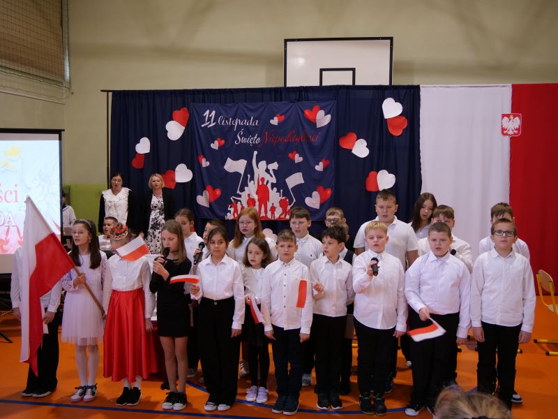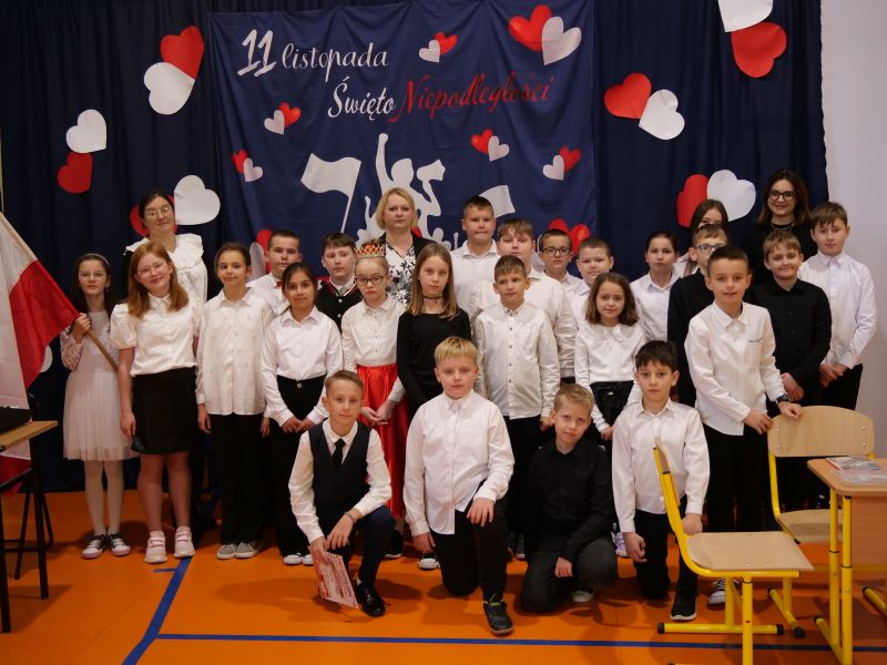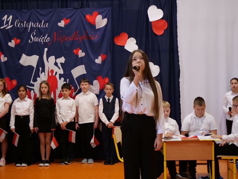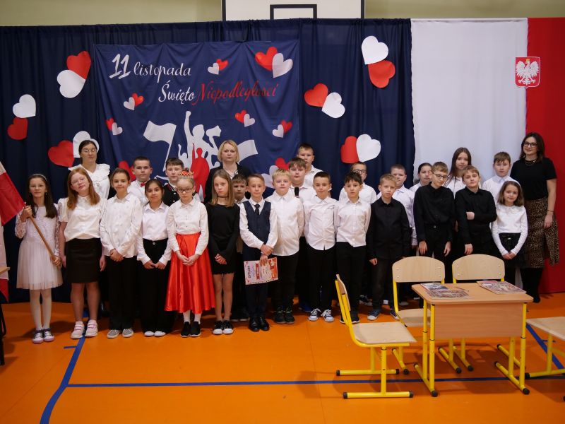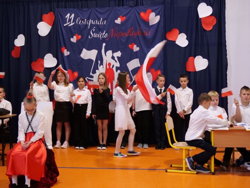 12 listopada 2025 roku nasza społeczność szkolna świętowała 107. Rocznicę Odzyskania przez Polskę Niepodległości. To pamiętny dzień, w którym nasza Ojczyzna po 123 latach niewoli powróciła na mapy Europy. Uczniowie klasy IV poprzez inscenizację, pieśni i wiersze przypomnieli wszystkim uczniom długą i trudną drogę Polski do wolności. Przygotowana inscenizacja stała się wspólnym wyrazem wdzięczności wobec tych, którzy oddali swoje życie za Ojczyznę. Przy tego typu uroczystościach zawsze pamiętamy o odśpiewaniu Hymnu Państwowego, a rangę wydarzenia podkreślają stroje galowe uczniów oraz poczet sztandarowy.