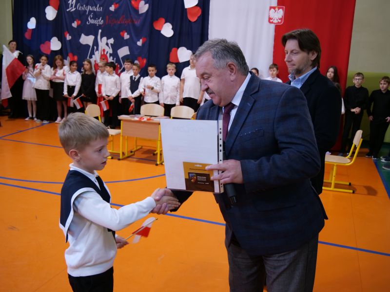 Zwycięzcy konkursu otrzymali ufundowane przez Radę Rodziców dyplomy oraz nagrody, które wręczył Pan Dyrektor Wiesław Jedziniak.