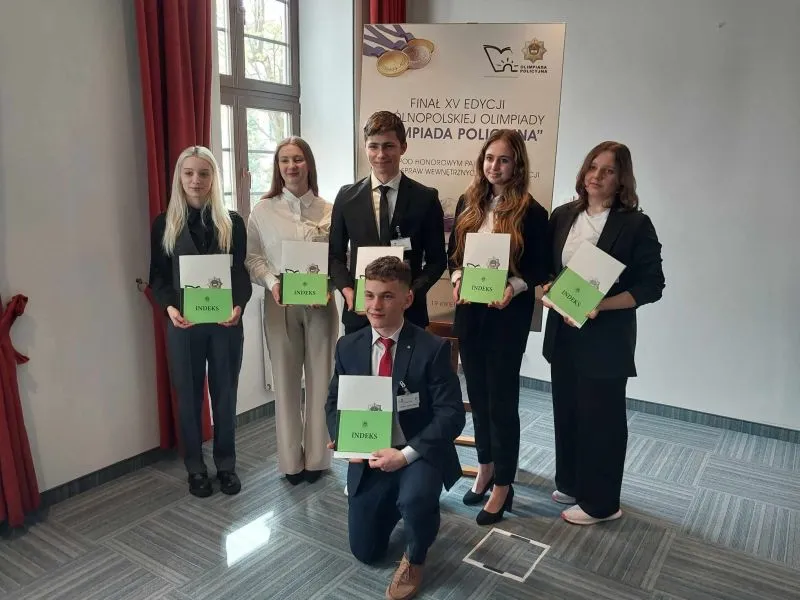 I miejsce zajął Adrian Długosz, II – Adriana Maziarz, III – Klaudia Kiełbasa, dodatkowo w pierwszej dziesiątce znalazło się kolejnych troje uczniów naszej szkoły, tj. Zuzanna Marek, Kinga Jajko i Karol Wielgosz, zajmując 5,6 i 9 miejsce. Tym samym nasi uczniowie zdobyli 6 z 15 miejsc, do zdobycia i zostaną przyjęci na wybrany kierunek studiów I stopnia realizowany w Akademii Policji bez udziału w dalszym postepowaniu rekrutacyjnym. Świetny wynik osiągnęła również Marta Zabawa i Mikołaj Zięba plasując się kolejno na 18 i 20 pozycji wśród 30 najlepszych finalistów z całej Polski, wyłonionych po dwóch etapach rywalizacji.