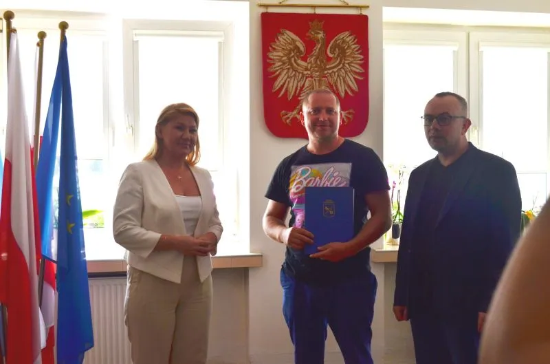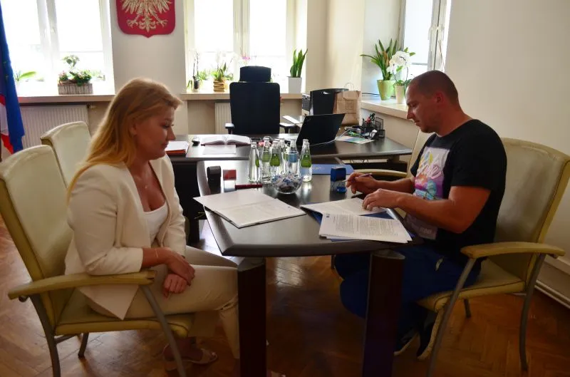 Poniżej zdjęcia z dzisiejszego dnia przedstawiające podpisanie umowy przez Panią Burmistrz: