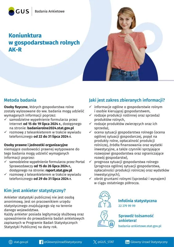 Rozpoczęła się kolejna edycja Badania Koniunktury w Gospodarstwach Rolnych (AK-R). Jest ona realizowana w dniach od 15 do 31 lipca br.
