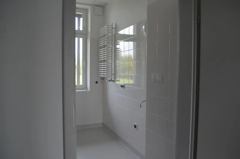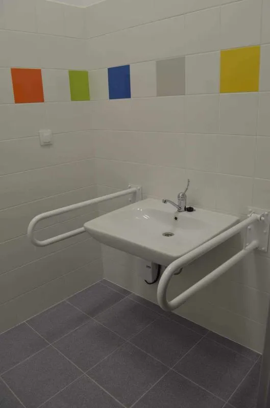 Zaprojektowano również łazienkę dla osób z niepełnosprawnością, oraz dźwig umożliwiający im wejście do budynku.