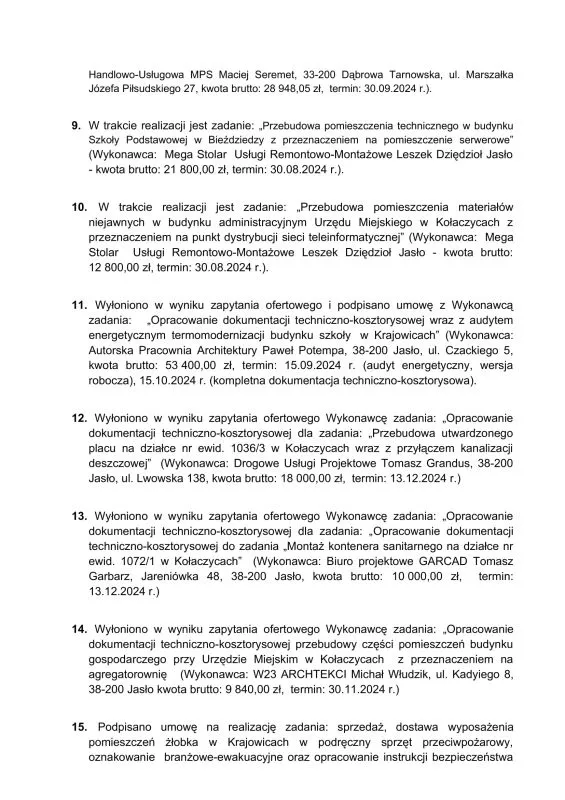 - zmiany budżetu Gminy Kołaczyce na 2024 rok.