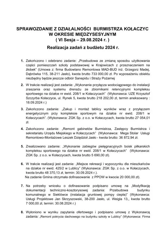 W załączeniu sprawozdanie Burmistrza Kołaczyc.