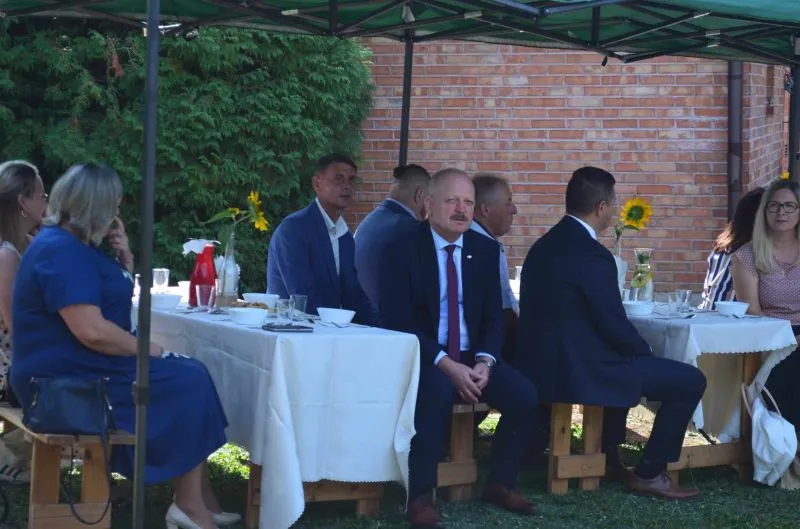Swoje słowa wygłosił również Pan Starosta Jasielski - Adam Pawluś, podziękował wszystkim zaangażowanym w pomoc w tworzeniu tego miejsca, wręczając grawerton jubileuszowy na ręce Pani Dyrektor DPS-u.