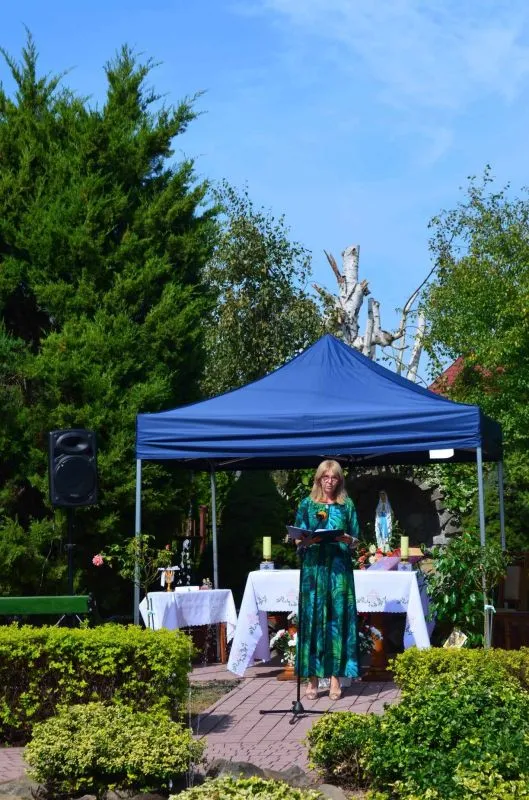 Po mszy świętej głos zabrała Pani Burmistrz Magdalena Stasiowska, która serdecznie powitała wszystkich zaproszonych gości, a szczególnie mieszkańców i pracowników DPS-u w Kołaczycach.
