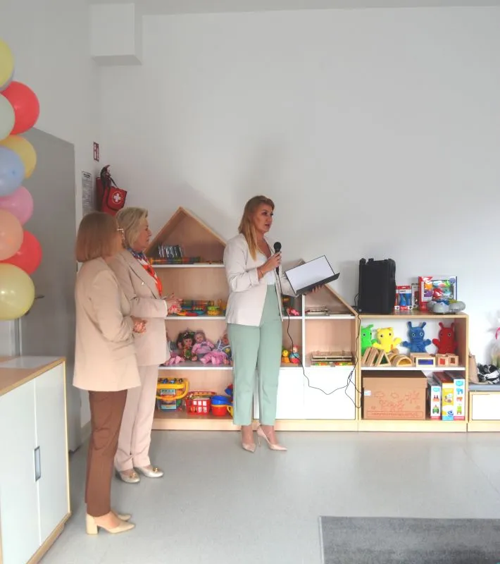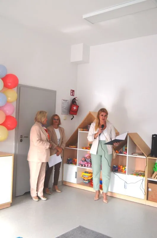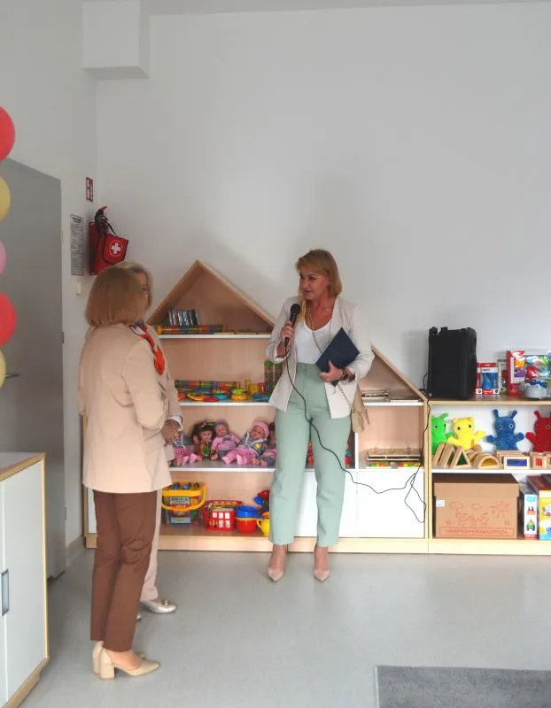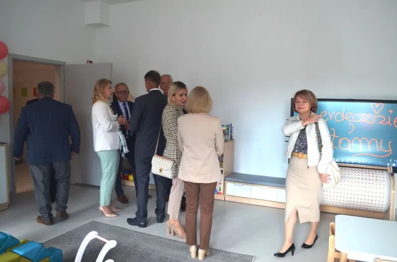 Głos zabrała także Pani Kamila Cholewiak-Kiczek - Dyrektor biura Posła do Parlamentu Europejskiego Bogdana Rzońcy. Złożyła wyrazy uznania dla wszystkich, którzy przyczynili się do stworzenia tego miejsca oraz życzyła, by żłobek każdego dnia tętnił życiem i aby maluchy z radością spędzały w nim każdą chwilę.
