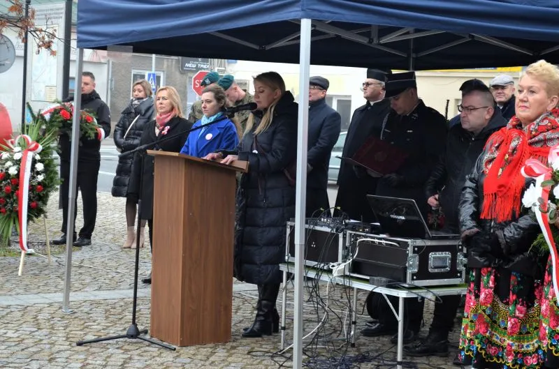 Po przywitaniu zaproszonych gości i uczestników obchodów, głos zabrała Pani Burmistrz Magdalena Stasiowska, która wspomniała o walczących o wolność kraju - polskich, poległych Bohaterach.