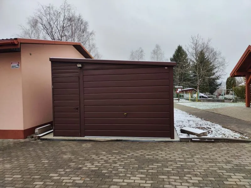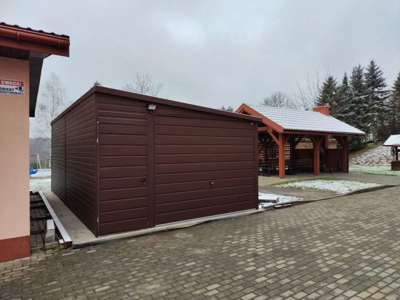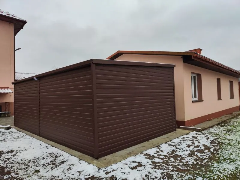 - kolor ścian, dachu, bramy, drzwi: ciemny brąz mat BTX 8017.