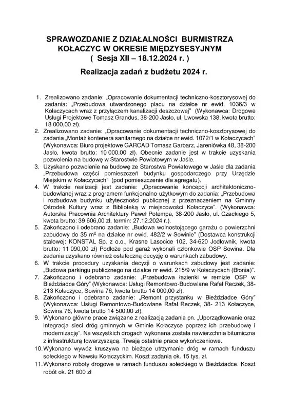 - Podjęcie uchwały budżetowej Gminy Kołaczyce na 2025 rok.