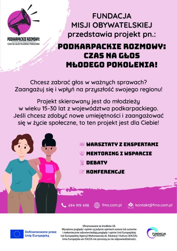 INFORMACJE NA TEMAT PROJEKTU: "PODKARPACKIE ROZMOWY: CZAS NA GŁOS MŁODEGO POKOLENIA!"