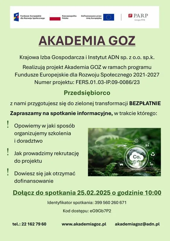 Szczegółowe informacje dostępne są na stronie internetowej projektu Akademia GOZ (https://akademiagoz.com.pl/)