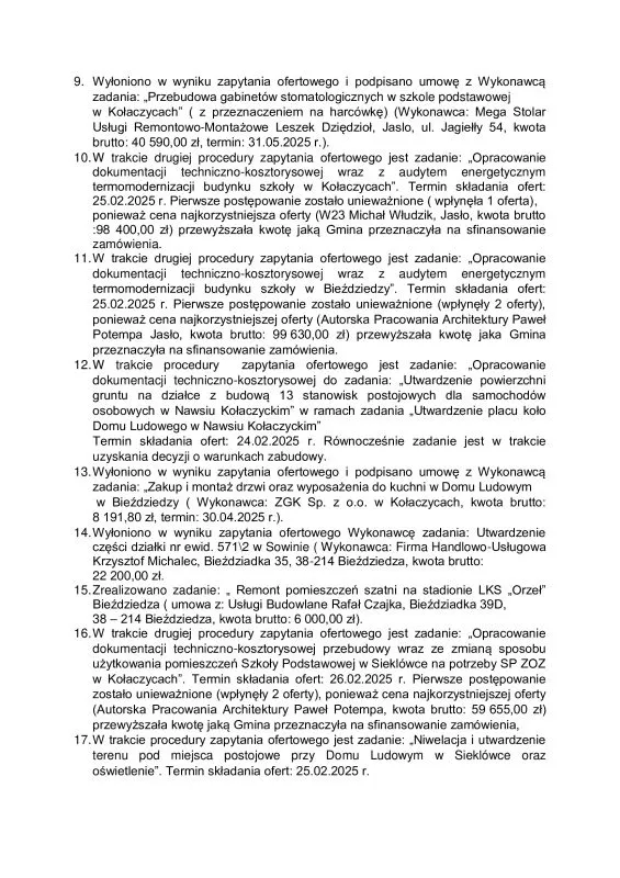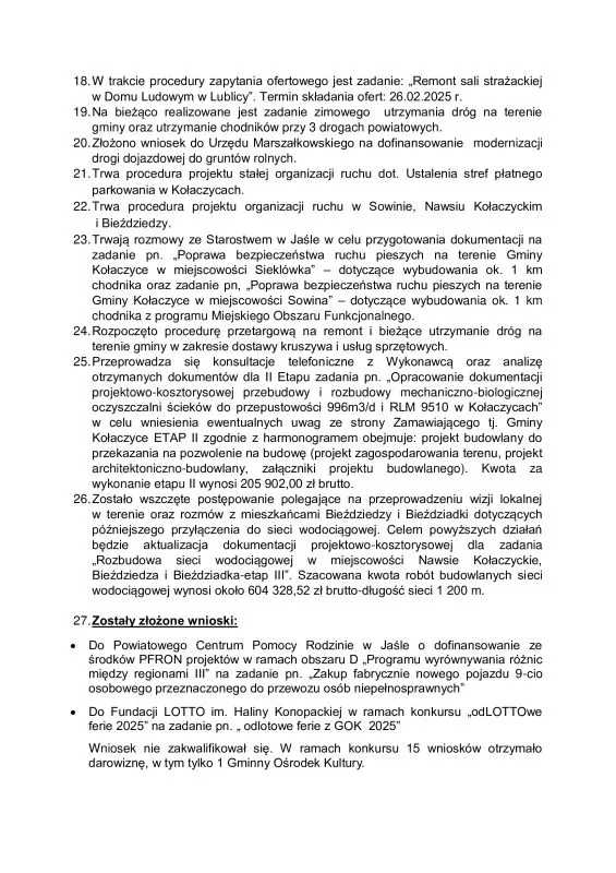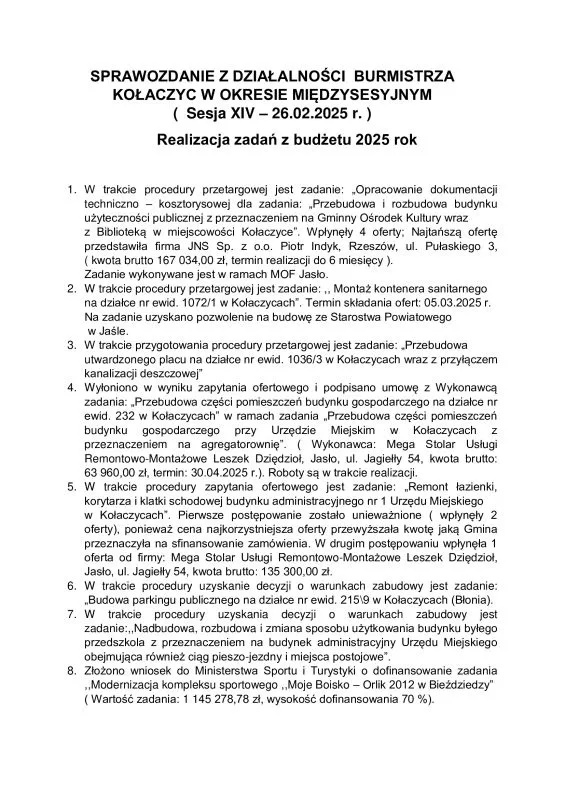 W załączeniu Sprawozdanie z działalności Burmistrza Kołaczyc w okresie międzysesyjnym.