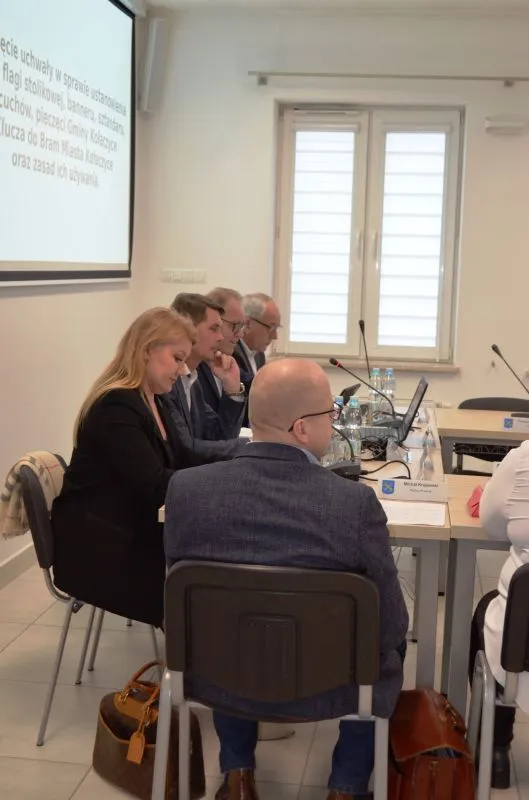 - Podjęcie uchwały w sprawie ustanowienia herbu, flagi stolikowej, banneru, sztandaru, łańcuchów, pieczęci Gminy Kołaczyce i Klucza do Bram Miasta Kołaczyce oraz zasad ich używania.
