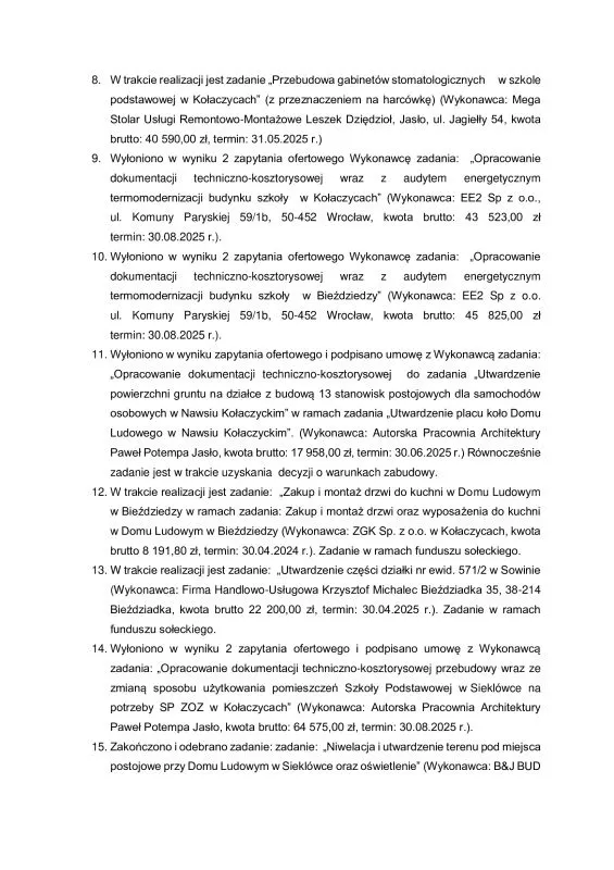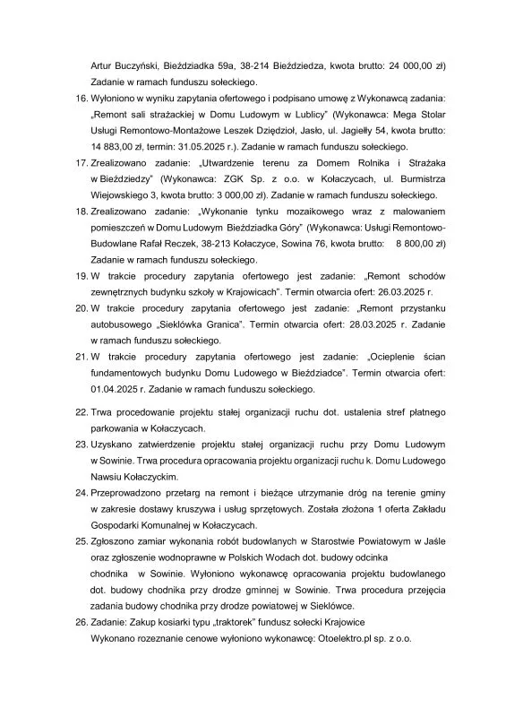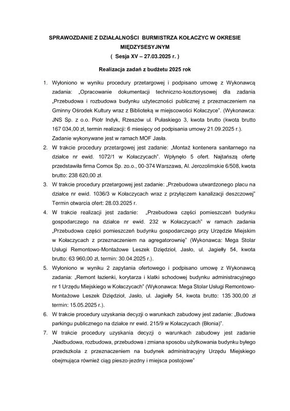W załączeniu Sprawozdanie z działalności Burmistrza Kołaczyc w okresie międzysesyjnym.