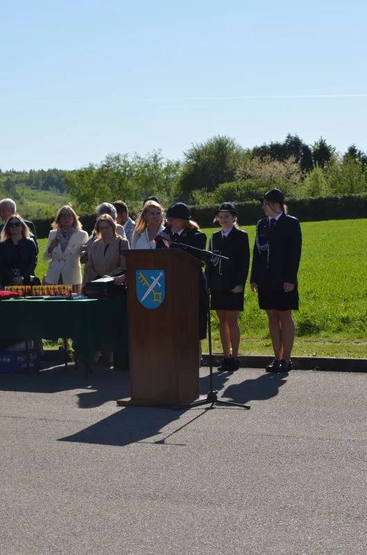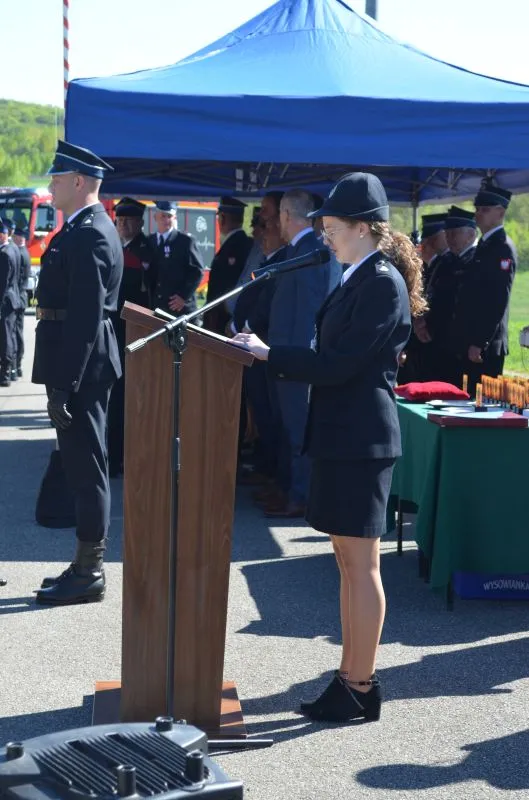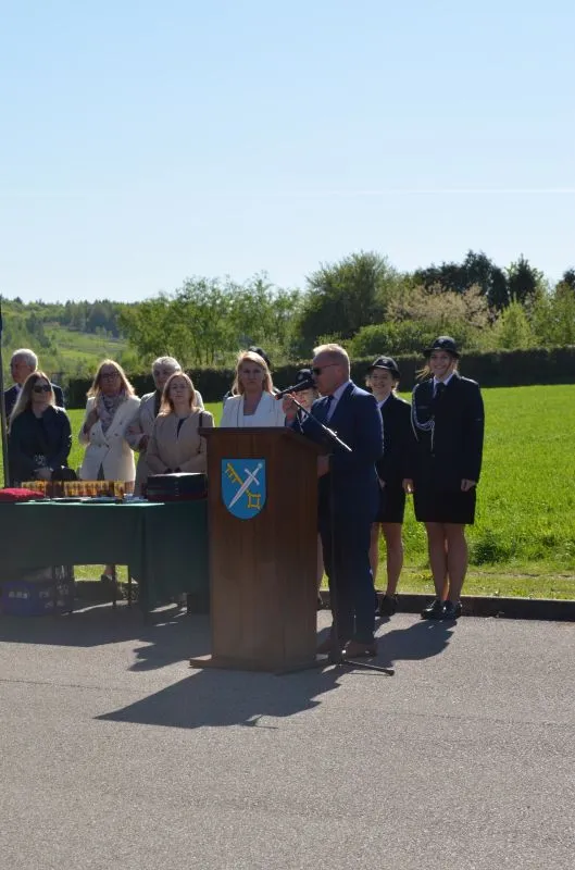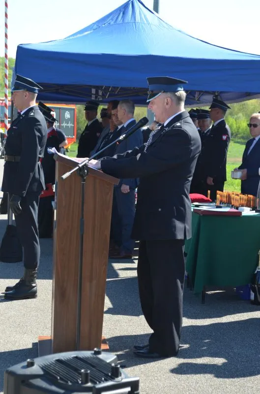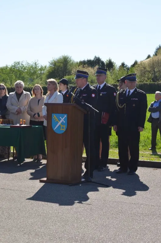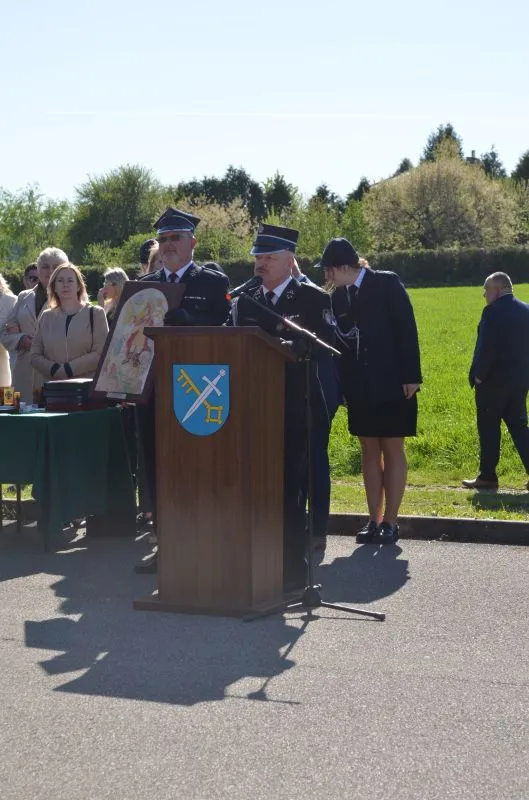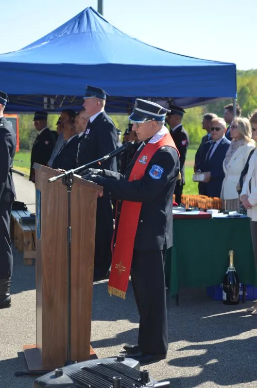 Podczas uroczystości kapelan Tadeusz Wawryszko dokonał poświęcenia nowego samochodu ratowniczo-gaśniczego, który został oficjalnie przekazany przez Panią Burmistrz Magdalenę Stasiowską. W swoim przemówieniu podkreśliła, że strażacy to "nie tylko bohaterzy w mundurach, ale przede wszystkim ludzie o wielkich sercach, gotowi poświęcić swój czas i siły dla dobra innych". Pani Burmistrz wyraziła także ogromne podziękowania wszystkim, którzy przyczynili się do pozyskania środków na zakup nowego wozu strażackiego.