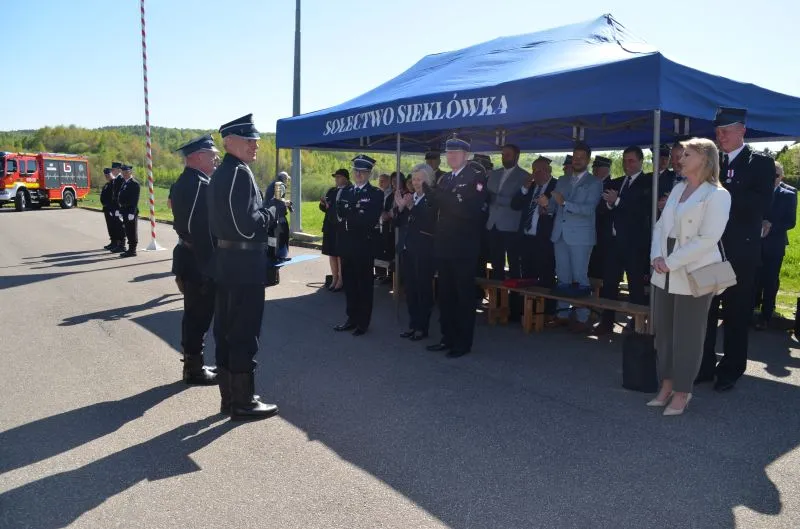 Po mszy nastąpił przemarsz na plac przy Kościele, gdzie odbył się uroczysty apel. Powitano wszystkich zgromadzonych gości oraz wręczono odznaczenia. Jednostka OSP Sieklówka została uhonorowana Odznaką Honorową "Strażacka Gwiazda Podkarpacia". Następnie miały miejsce okolicznościowe wystąpienia, których dokonali m.in.: Senator RP Pani Alicja Zając, Burmistrz Kołaczyc Pani Magdalena Stasiowska, Etatowy Członek Zarządu Pan Jan Muzyka, Radny Rady Sejmiku Województwa Podkarpackiego Pan Mateusz Lechwar, Radny Rady Powiatu Pan Paweł Nowak, Dyrektor KRUS w Rzeszowie Pan Jan Urban, Prezes ZOG ZOSP-RP w Kołaczycach Pani Małgorzata Salacha, Przewodniczący Rady Miejskiej w Kołaczycach Pan Stanisław Rogaczewski, Radny Rady Miejskiej w Kołaczycach Pan Andrzej Maziarz. Dodatkowo, na ręce Zarządu OSP Sieklówka wręczono pamiątkowe grawertony oraz inne okolicznościowe upominki. To piękny gest, który miał na celu utrwalenie tej wyjątkowej chwili w historii jednostki.