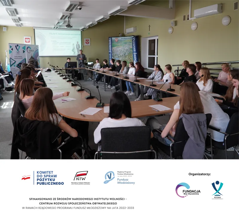 „Młodzi ludzie z powiatu jasielskiego mają ogromny potencjał. Takie spotkania pomagają im zdobyć wiedzę i uwierzyć, że ich głos ma znaczenie” – powiedział Adam Poręba, Wiceprezes Fundacji Misji Obywatelskiej.