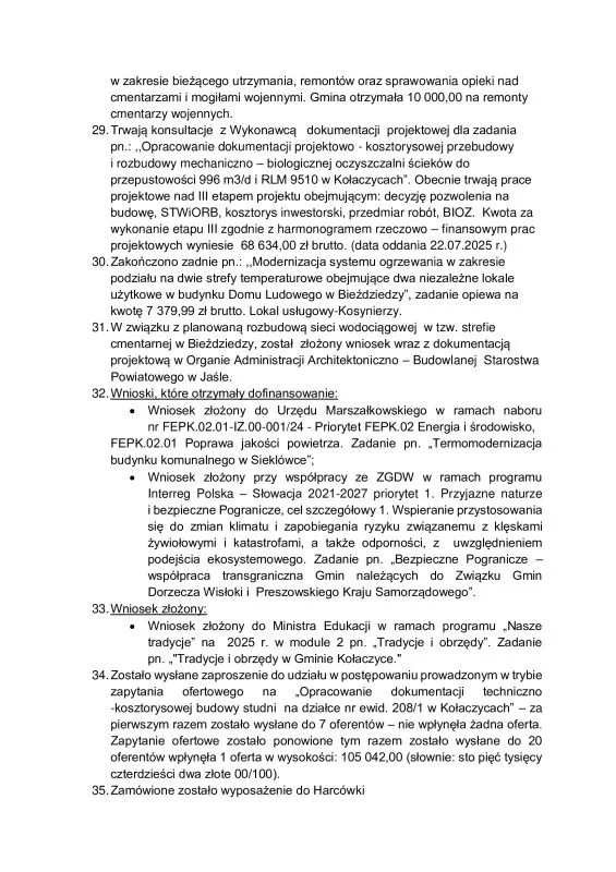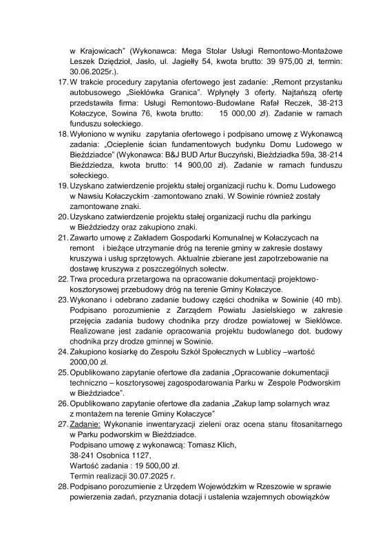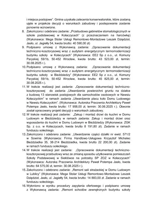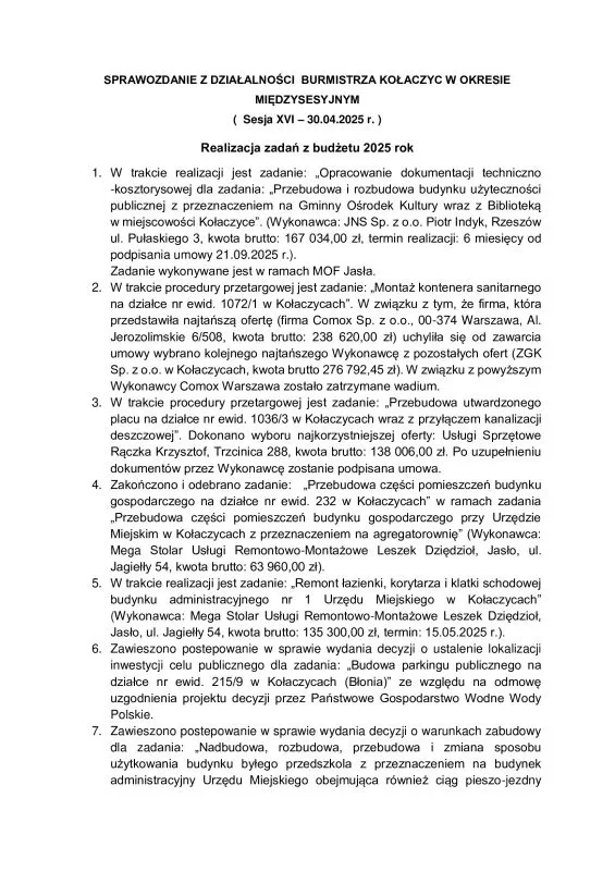 W załączeniu Sprawozdanie z działalności Burmistrza Kołaczyc w okresie międzysesyjnym.