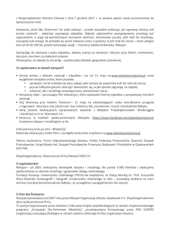- Sprzątajmy po sobie w miejscach publicznych, szczególnie w pobliżu wód.
