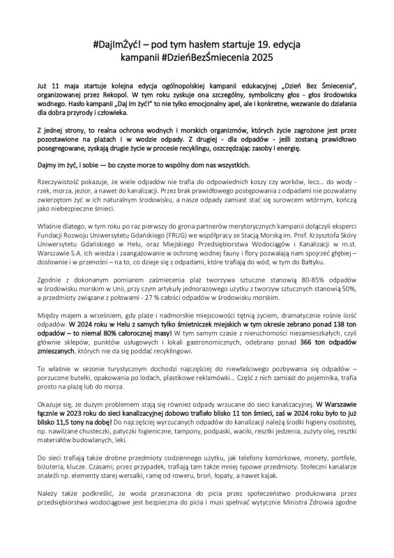 Dziś Dzień Bez Śmiecenia! "Daj im żyć!" - posłuchaj głosu wód!