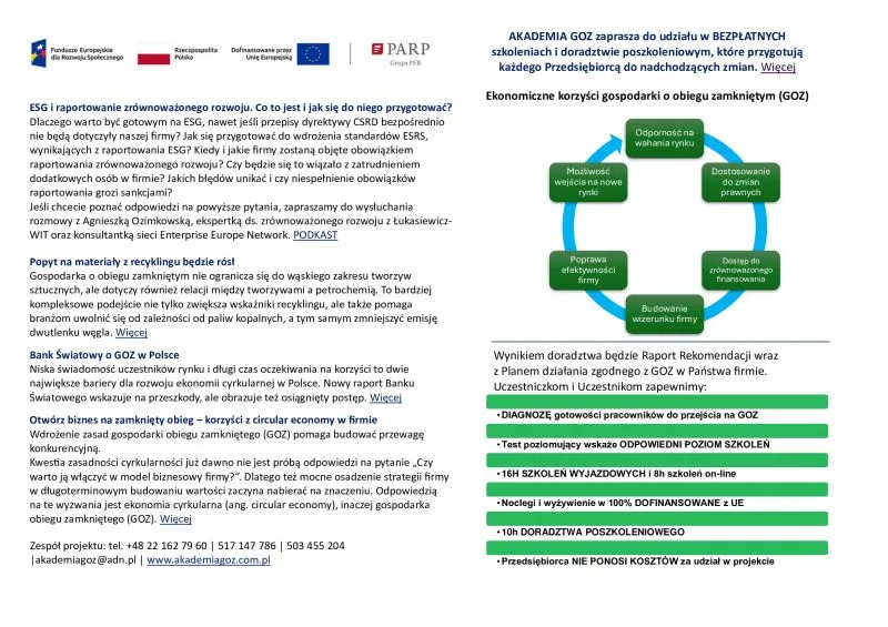 BEZPŁATNE SZKOLENIA I DORADZTWO Z TEMATYKI GOSPODARKI O OBIEGU ZAMKNIĘTYM - AKADEMIA GOZ
