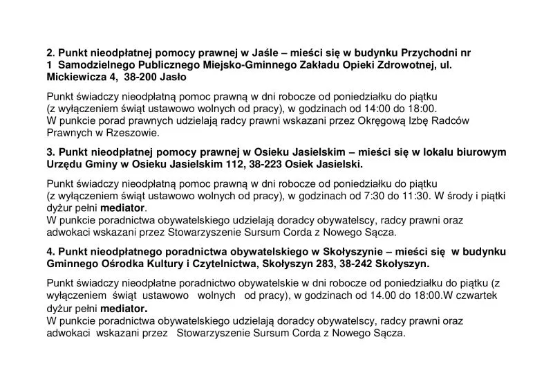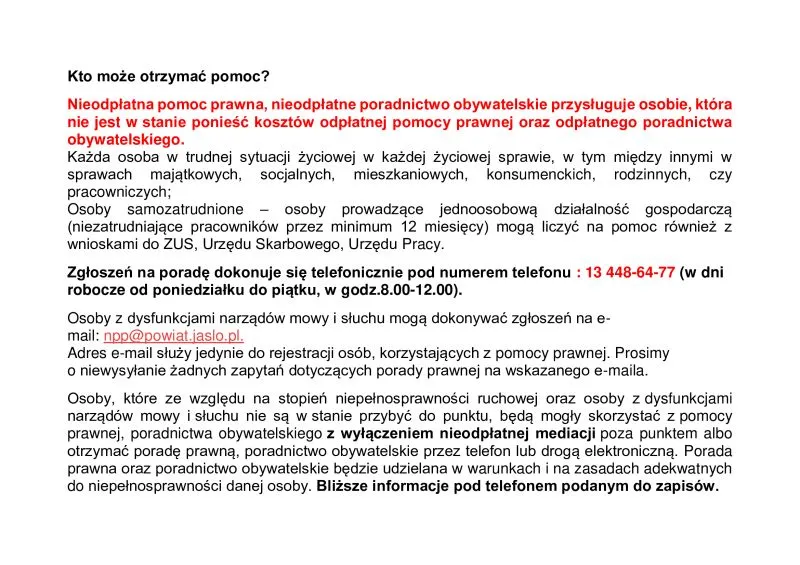 - link – informacja o nieodpłatnej pomocy prawnej: Nieodpłatna pomoc prawna - Powiat Jasielski - Portal gov.pl