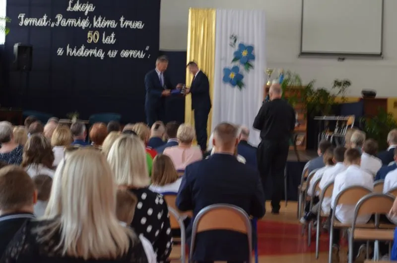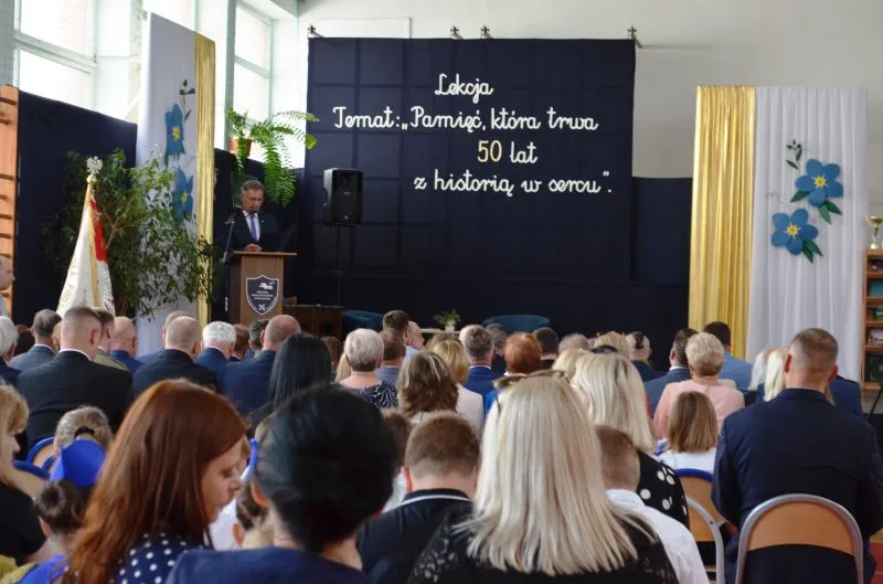 Głos zabrała Pani Burmistrz Magdalena Stasiowska, która podkreśliła ogromne znaczenie Jubileuszu. Jak sama zaznaczyła, "Pół wieku istnienia, to tysiące wspomnień, to pokolenia młodych ludzi, którzy właśnie tutaj zdobywali wiedzę i rozwijali swoje pasje... To tutaj zawiązywały się przyjaźnie na całe życie, tutaj uczono szacunku, współpracy i wartości...". Pani Burmistrz wspominała również swoje lata nauki w tej szkole, dziękując swoim wychowawczyniom i nauczycielom. Wyraziła też wdzięczność całej społeczności szkolnej za ich pracę na rzecz placówki.