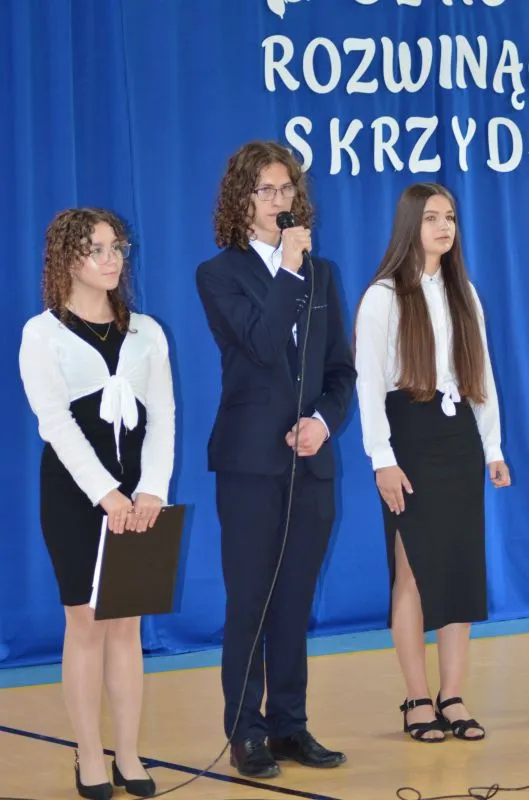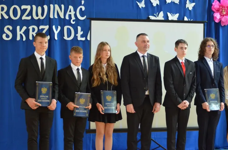 Był to dzień pełen emocji, wzruszeń i podziękowań. Uroczystość była podwójnie wyjątkowa. Po pierwsze, ze szkolnymi murami pożegnali się uczniowie ósmych klas. Był to dla nich moment podsumowań i podziękowań za lata nauki, przyjaźni i wspólnych doświadczeń. Ósmoklasiści w pięknych słowach dziękowali Rodzicom, Dyrekcji, Nauczycielom i Wszystkim Pracownikom Szkoły za trud włożony w ich wychowanie i edukację.
