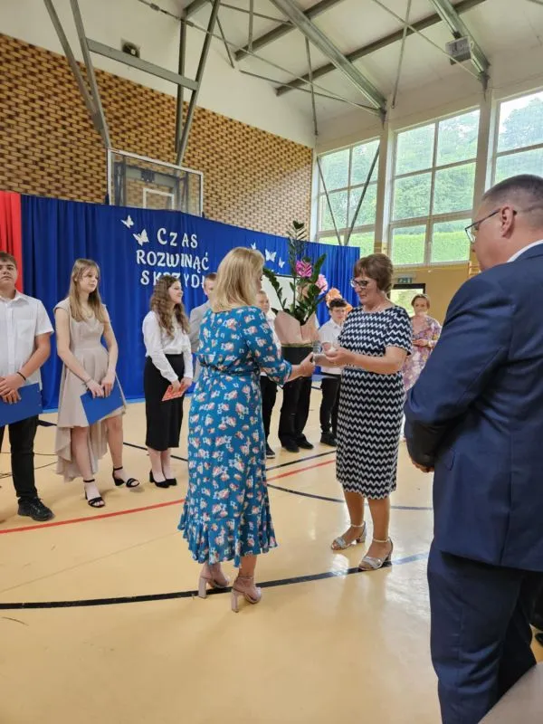 Gratulujemy wszystkim uczniom, szczególnie ósmoklasistom, życzymy udanych wakacji, a Pani Dyrektor Jolancie Matysik – zasłużonego i spokojnego odpoczynku!