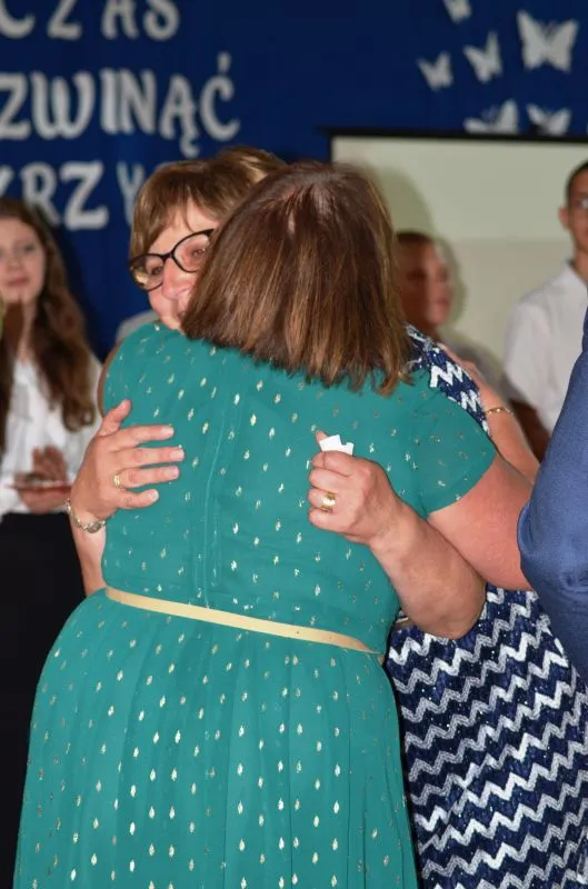 Po drugie, społeczność szkolna pożegnała Panią Dyrektor Jolantę Matysik, która po 41 latach pracy w szkole przechodzi na zasłużony odpoczynek. To niesamowity staż, świadczący o ogromnym poświęceniu i pasji. Z pewnością było to niezwykle wzruszające pożegnanie, pełne łez, podziękowań i wspomnień.