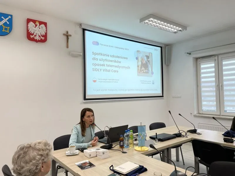 Dużym zainteresowaniem wśród seniorów cieszyła się również druga część spotkania poprowadzona przez Panią Małgorzatę Gibka – przedstawicielkę firmy SiDLY, która mówiła o nowoczesnej formie opieki jaką jest Teleopieka. Seniorzy mieli okazję poznać zasady działania opaski telemedycznej oraz jej funkcje, a także przetestować dwa rodzaje opasek. Pani Gibka podkreśliła, że ta nowoczesna forma opieki to szansa dla osób starszych na uratowanie zdrowia i życia.