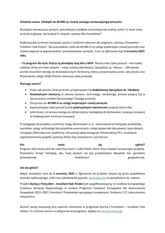 Startuj z pomysłem - Aplikuj na innostarthub.org