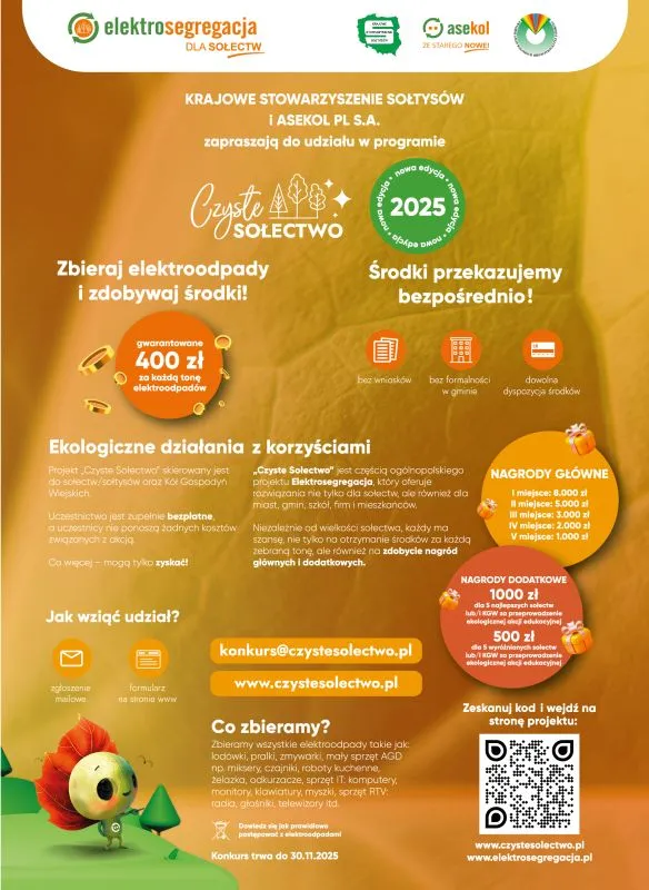 Krajowe Stowarzyszenie Sołtysów wraz z ASEKOL PL S.A. serdecznie zaprasza Sołectwa i Koła Gospodyń Wiejskich do udziału w programie „Czyste Sołectwo”!