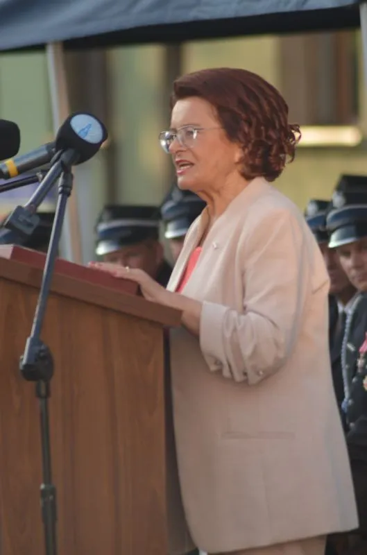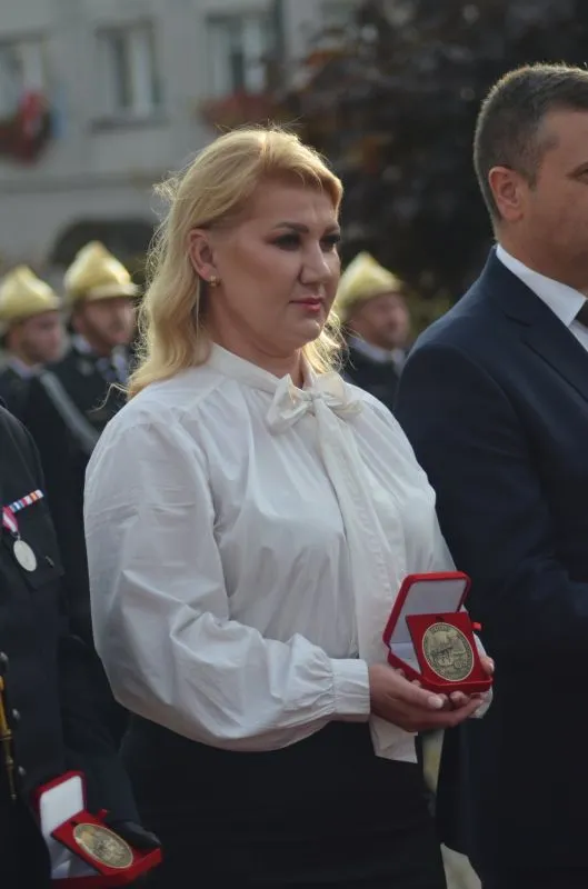Pani Burmistrz podkreśliła ogromną wzniosłość uroczystości, zwracając uwagę na historyczne znaczenie jednostki. „Przez 140 lat byliście i jesteście nieodłączną częścią naszej społeczności. W każdej potrzebie, w każdej chwili zagrożenia – zawsze na pierwszej linii, gotowi nieść pomoc” – mówiła, wyrażając głęboki szacunek dla poświęcenia strażaków. W swoim przemówieniu Pani Burmistrz zaznaczyła, jak bardzo ceni współpracę ze wszystkimi jednostkami straży. Nie zabrakło też osobistego akcentu – wspomniała, że jej rodzina również jest częścią historii tego jubileuszu, co nadało przemówieniu wyjątkowo ciepły i osobisty ton.