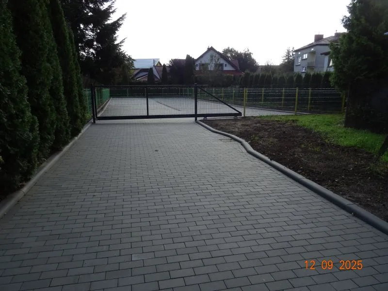 - Dodatkowo, w celu poprawy funkcjonalności, zamontowano 4-metrową bramę przesuwną oraz nowe panele ogrodzeniowe 3d o wysokości 120 cm, dopasowane do istniejącego ogrodzenia.