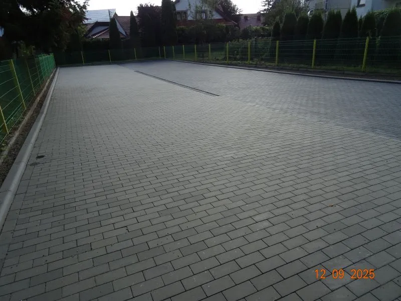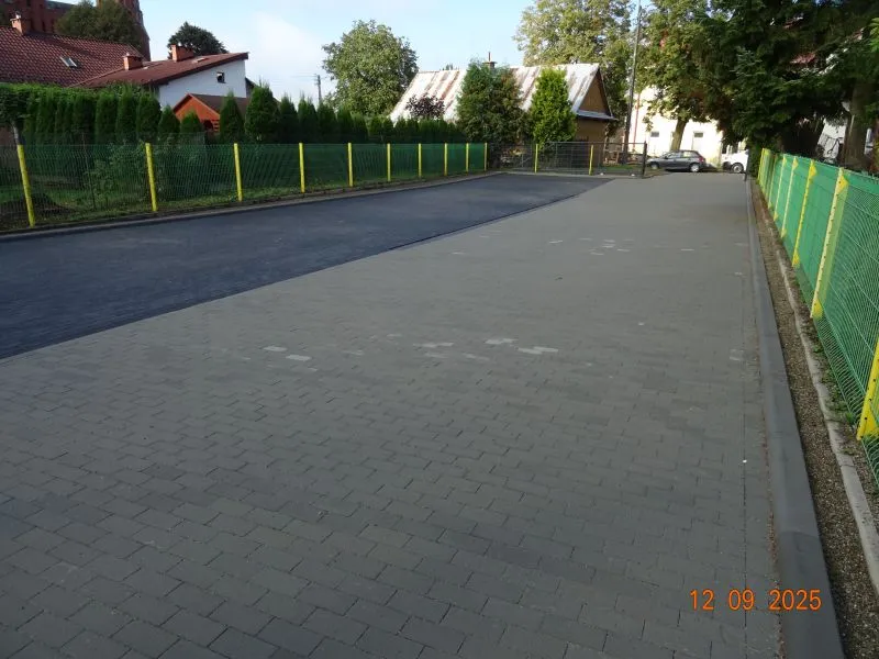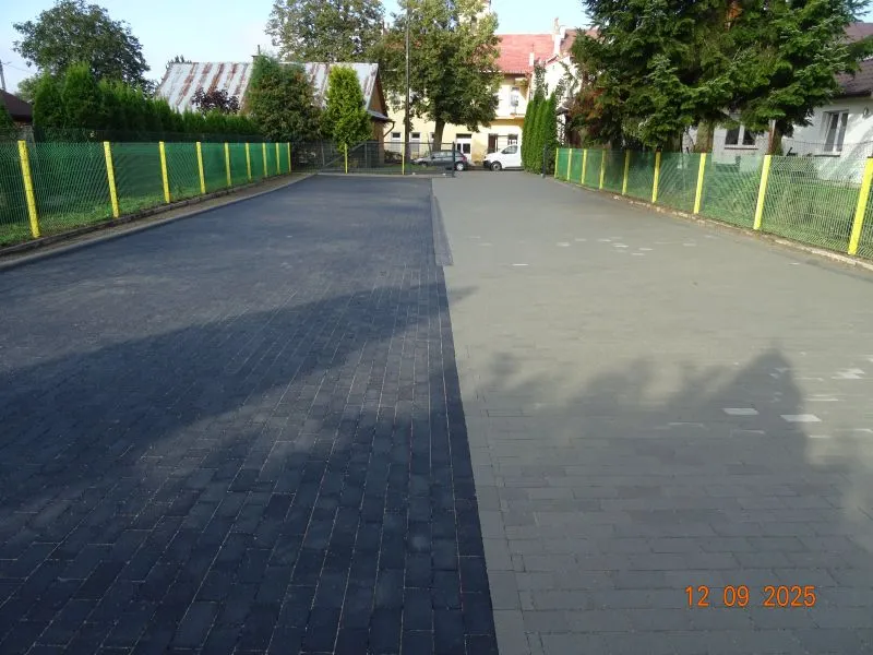 - W ramach zadania gruntownie przebudowano plac o wymiarach 10 x 26,6 m oraz dojazd 11,35 x 4 m. Dotychczasową nawierzchnię ze żwirku i gruntu zastąpiono trwałą i estetyczną kostką betonową o grubości 8 cm, ułożoną na stabilnej podbudowie.